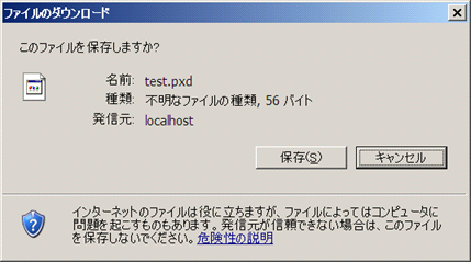 IISで何も設定していない場合、pxdファイルに直リンクした場合は以下のページが表示されます。
